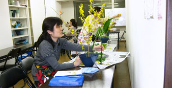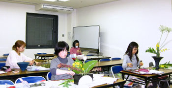 池坊いけばな 明田眞子教室のお稽古の風景です。教室は八丁堀教室、西区民文化センター教室、 安佐南区民文化センター教室、南区民文化センター教室、安教室がございます。